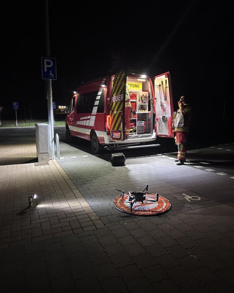 Gegen 2:50 Uhr alarmierte die Regionalleitstelle Nord die FF Leck zu einer Personensuche zur Unterstützung der FF Bredstedt nach Bredstedt. Nach einer kurzen Lagebesprechung mit der Einsatzleitung und Einweisung in die Örtlichkeit konnte dann umgehend die Personensuche mit der Drohne begonnen werden. Der uns zugeteilte Bereich wurde mit der Drohne abgeflogen und mit der Wärmebildkamera der Drohne gesichtet. Dabei wurden auch einige Tiere ausfindig gemacht. Parallel wurde der Bereich durch einen Hubschrauber der Bundespolizei abgeflogen und ebenfalls mit Hilfe einer Wärmebildkamera abgesucht. Nach ca. einer Stunde wurde die vermisste Person im näheren Umfeld des Wohnortes in einem Wohnhaus aufgefunden. Die Personensuche mit der Drohne konnte somit abgebrochen werden.