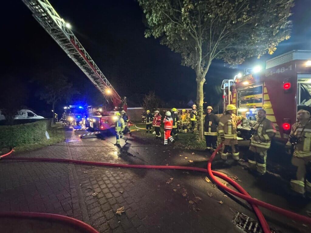 Dort brannte ein Carport in voller Ausdehnung; die Flammen hatten bereits auf den Dachstuhl des angrenzenden Wohnhauses übergegriffen.