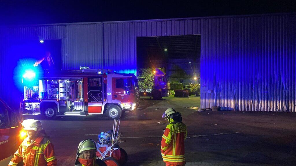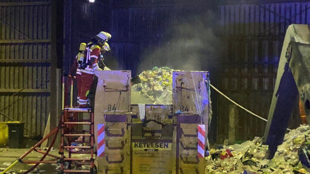 Gegen 16:43 Uhr alarmierte die Regionalleitstelle Nord zu einem Feuer – kleiner Standard – bei einem Müllentsorgungsunternehmen in der Georg-Ohm-Straße in Leck. Es wurde eine Rauchentwicklung in einer Müllpresse/Müllverdichter gemeldet. Bei der ersten Erkundung bestätigte sich dieses. Es wurde eine leicht verqualmte Halle, aber kein offenes Feuer in dem ca. 200 Kubikmeter großen Müllberg, der in der Halle lagert, festgestellt. Um ein mögliches Feuer oder Glutnester in dem Müllberg auszuschließen, wurde dieser mit Hilfe eines Radladers auseinander gezogen und mit einer Wärmebildkamera kontrolliert. Anschließend wurde der Müll (gelbe Tonne) in Container geladen. Insgesamt wurden so bis ca. 22:00 Uhr 7 Container mit jeweils 38 Kubikmeter kontrolliert und ins Freie verbracht. Abschließend war festzustellen, dass es glücklicherweise kein offenes Feuer gab. Die DRK-Bereitschaft Leck stand während des gesamten Einsatzes für die Sicherheit unserer Einsatzkräfte an der Einsatzstelle bereit. Dafür ein großer Dank.