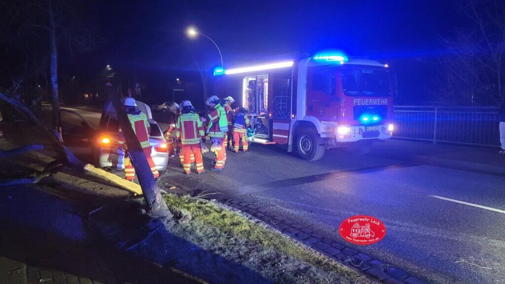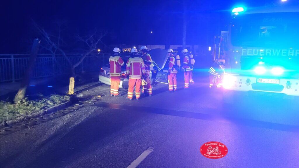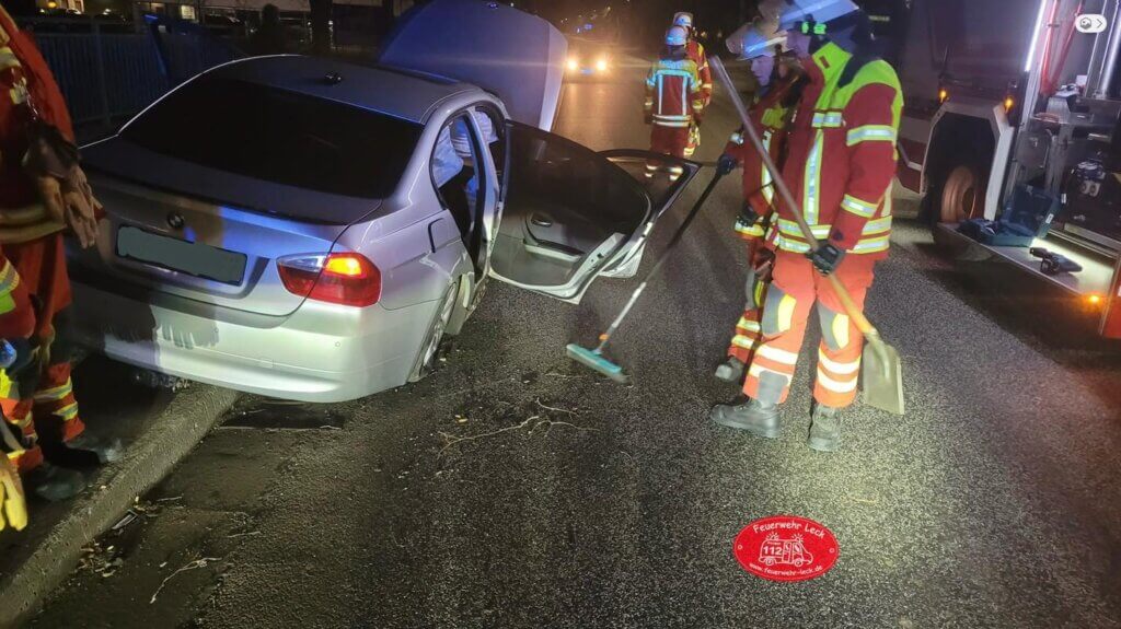 Gegen 5:04 Uhr alarmierte die Regionalleitstelle Nord die FF Leck zu einem Brandeinsatz. Nach einem Verkehrsunfall an der Süderbrücke war es zu einer Rauchentwicklung an einem PKW gekommen. Nach erster Erkundung konnte weder die gemeldeten Rauchentwicklung noch Feuer am dem Fahrzeug festgestellt werden. Dennoch wurde das Fahrzeug kontrolliert, die Einsatzstelle gesichert, der Baum von der Straße geräumt und anschließend die Straße gereinigt.