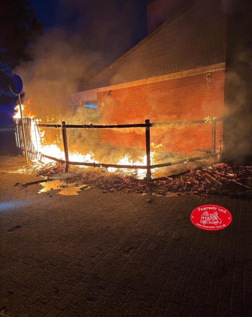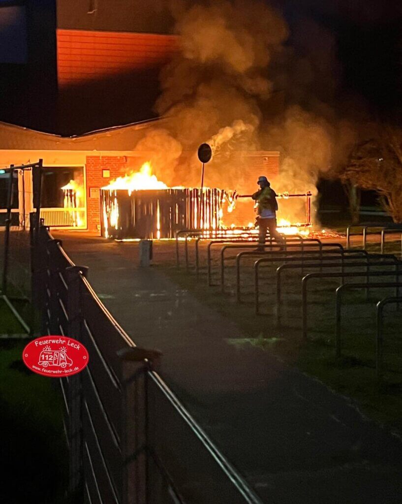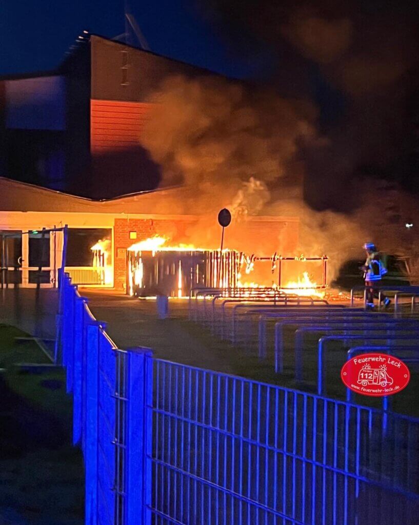 📣 FEU – Mülltonnen brennen am Gebäude – Gemeinschaftsschule 📍 Leck, Am Süderholz
