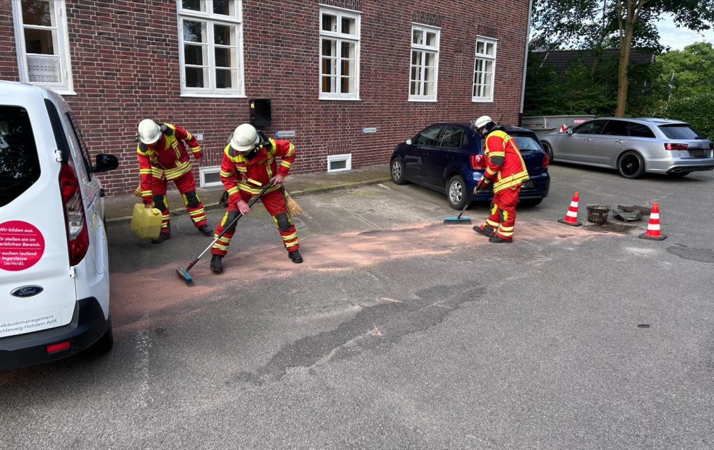 Zu morgendlicher Zeit alarmierte die Regionalleitstelle Nord die FF Leck in die Eesackerstraße zu einer technische Hilfeleistung, kleiner Standard. Auf dem Parkplatz eines Behörderngebäudes in der Eesackerstraße war aus nicht bekannten Gründen der Tankinhalt eines PKWs in die Oberflächenentwässerung gelaufen. Soweit möglich, wurden die restlichen Betriebsstoffe mit Ölbindemittel aufgenommen. Weitere Betriebsstoffe sammelten sich in einem Übergabeschacht auf dem Grundstück. Das hierin befindlichen Gemisch aus Schlamm und Betriebsstoffen wird in Laufe des Tages durch ein Entsorgungsunternehmen abgesaugt und fachgerecht entsorgt.