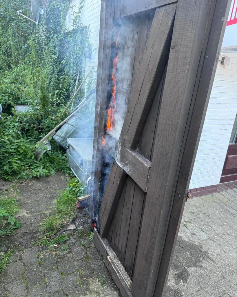 Zu einem gemeldeten Schuppenbrand rückte die FF Leck gegen 19:17 Uhr in Richtung Birkstraße aus. Nach erster Erkundung stellte sich heraus, dass aus unklarer Ursache eine Holztür in Brand geraten war. Die Tür wurde abgelöscht, weiteres Eingreifen war nicht erforderlich.